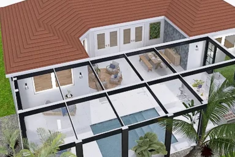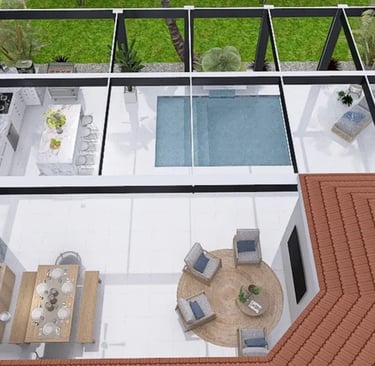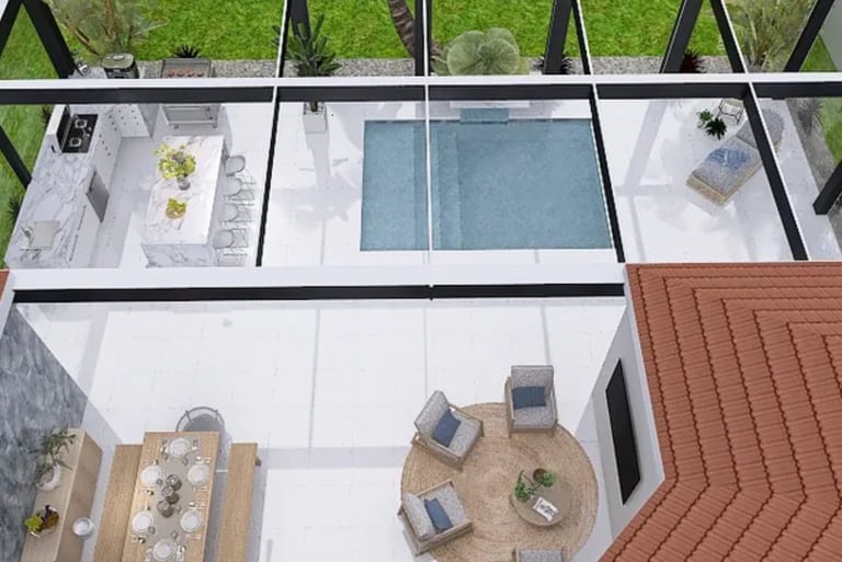 This outdoor oasis is more than just a visual delight; it's a lifestyle choice that encourages outdoor living. The thoughtful design promotes a seamless flow between the various spaces, inviting exploration and enjoyment at every turn. From sun-soaked days spent poolside to evenings filled with laughter around the kitchen and lounge, every aspect of this retreat is meant to foster connection, relaxation, and timeless memories.